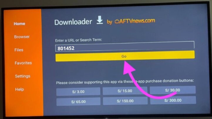 Ahora, dentro de la barra de búsquedas ingresaremos el código 801452 y daremos en "Go":